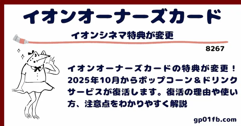 - イオンオーナーズカード特典の変更で、2025年10月からポップコーンまたはドリンクのサービスが復活