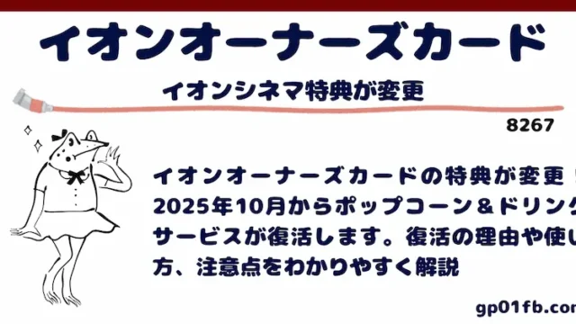 イオンオーナーズカードのイオンシネマ特典が2025年10月から変更!待望のポップコーンまたはドリンクサービスが復活します。特典の内容や使い方、注意点、復活の理由まで最新情報をやさしく解説。イオンの株主優待を活用して映画をもっとお得に楽しみませんか?